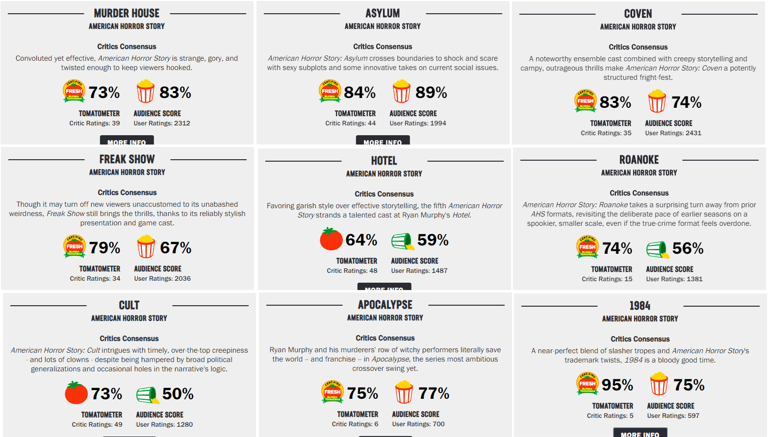 All Rotten Tomatoes Ratings. r/AmericanHorrorStory