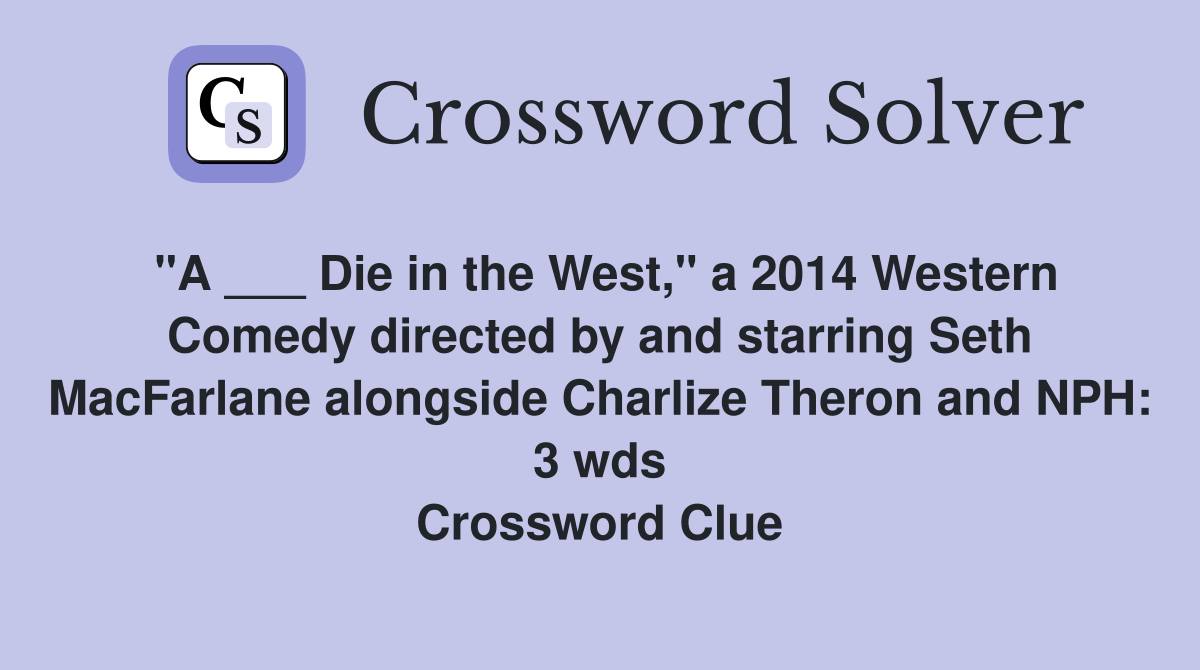 "A ___ Die in the West," a 2014 Western Comedy directed by and starring Seth MacFarlane