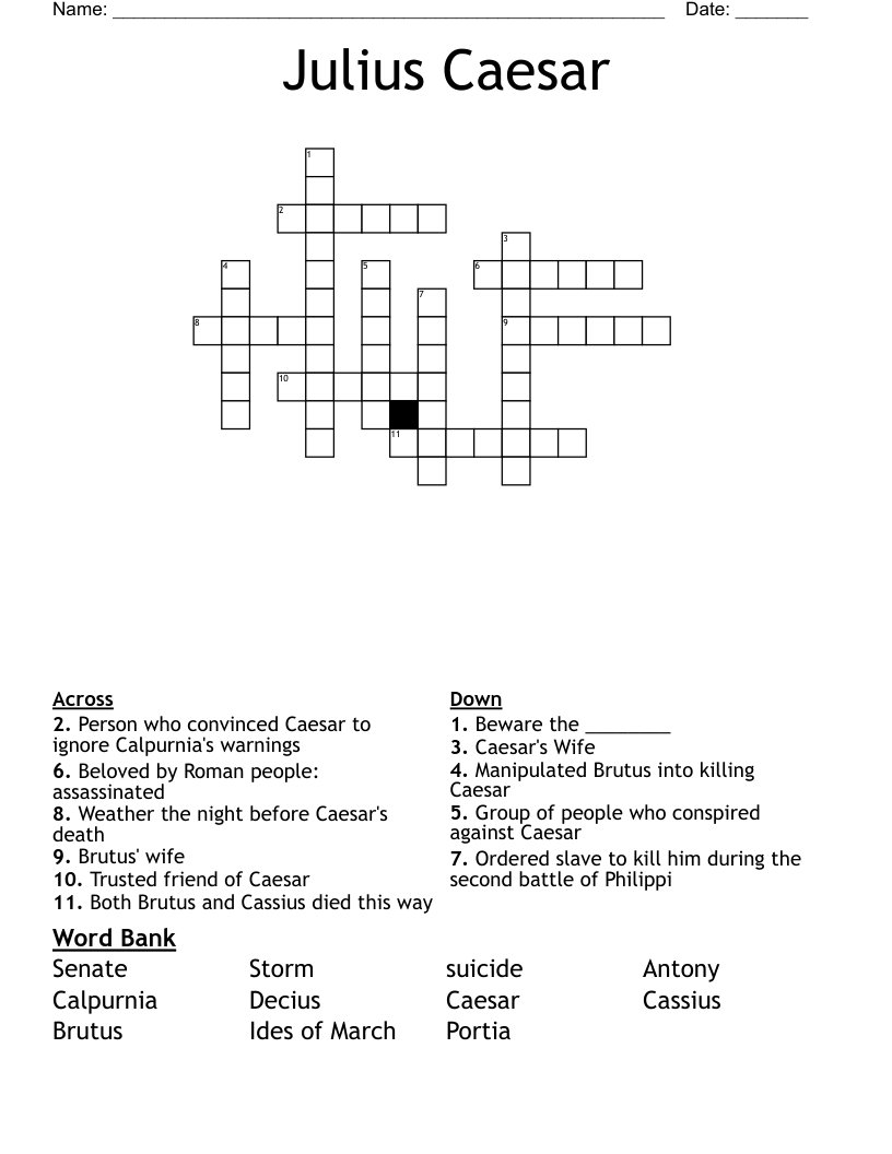 Crossword Puzzle The Tragedy of Julius Caesar by Teach Simple