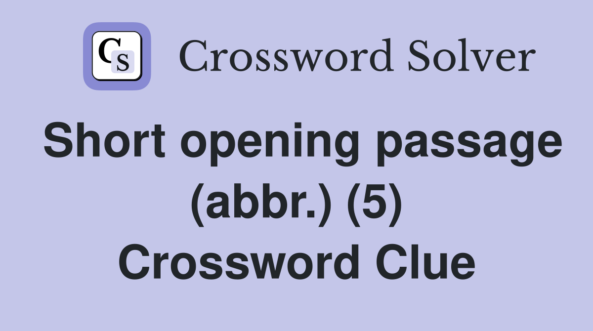 Short opening passage (abbr.) (5) Crossword Clue Answers Crossword Solver