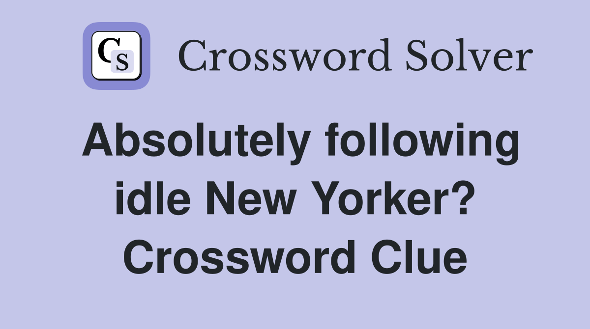 Absolutely following idle New Yorker? Crossword Clue Answers Crossword Solver