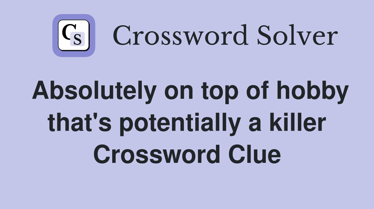 Absolutely on top of hobby that's potentially a killer Crossword Clue Answers Crossword Solver