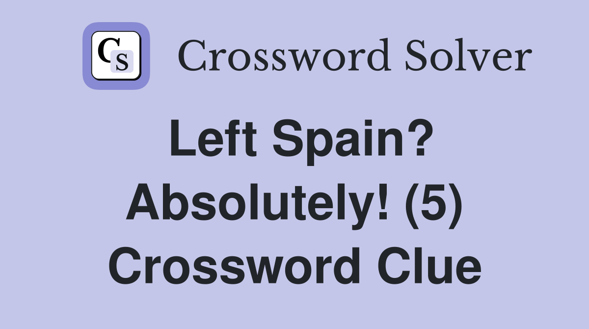 Left Spain? Absolutely! (5) Crossword Clue Answers Crossword Solver