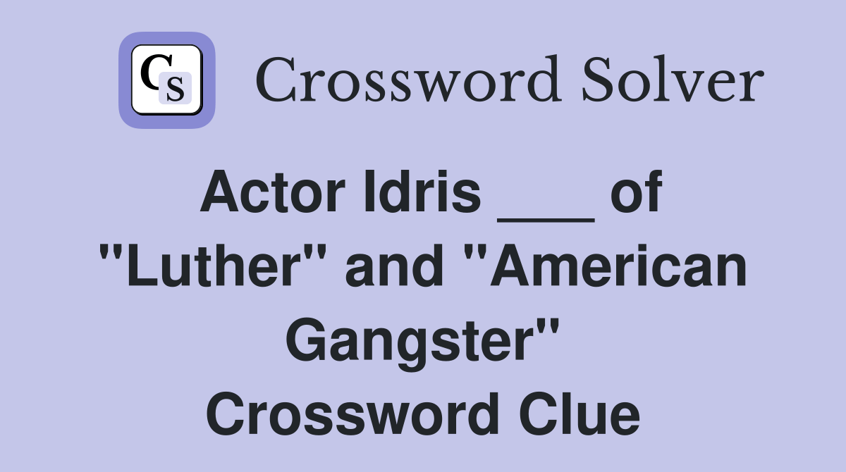 Actor Idris ___ of "Luther" and "American Gangster" Crossword Clue Answers Crossword Solver