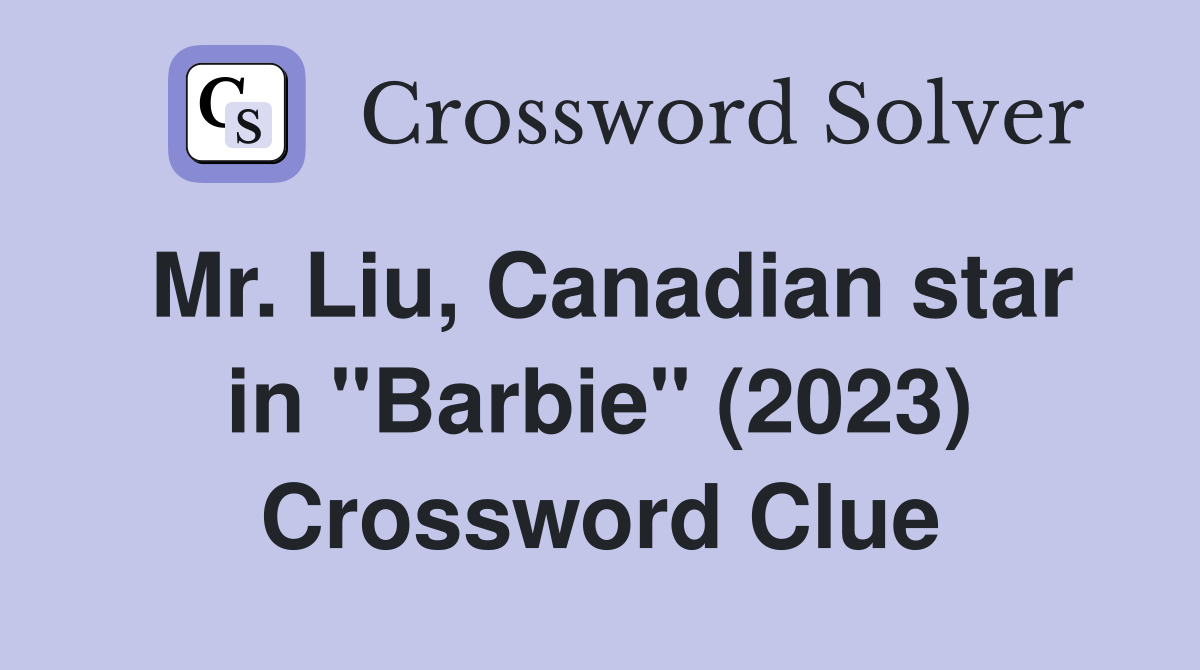 Mr. Liu, Canadian star in "Barbie" (2023) Crossword Clue Answers Crossword Solver