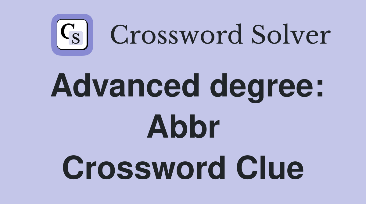 Advanced degree Abbr. Crossword Clue Answers Crossword Solver
