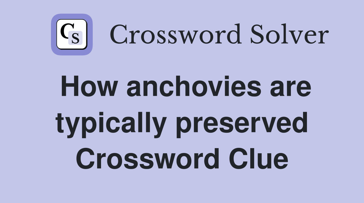 How anchovies are typically preserved Crossword Clue Answers Crossword Solver