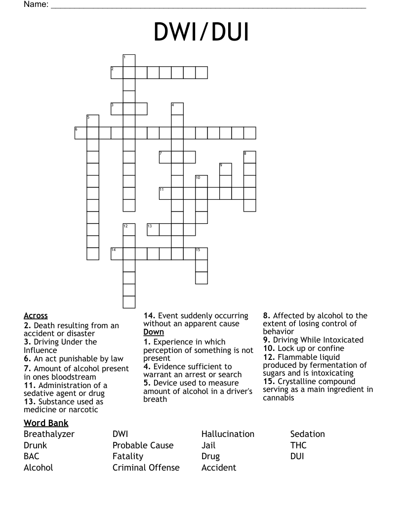 The crossword solver finds answers. We have found 40 possible. Web the crossword solver found 30 answers to anti dui ad, maybe, 3 letters crossword clue. We will try to find the right answer to this particular. Web here is the answer for the crossword clue ad about dui, maybe last seen in premier sunday puzzle.