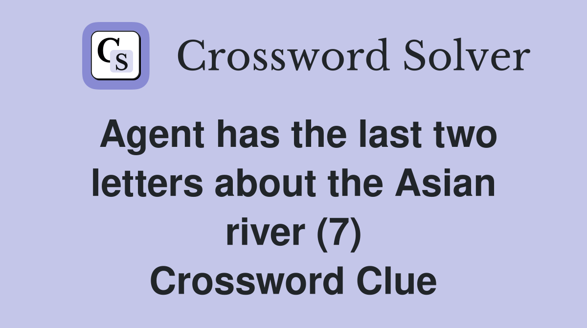 Agent has the last two letters about the Asian river (7) Crossword Clue Answers Crossword Solver