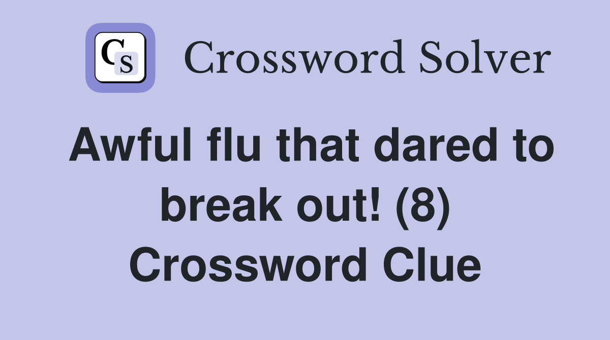 Awful flu that dared to break out! (8) Crossword Clue Answers Crossword Solver