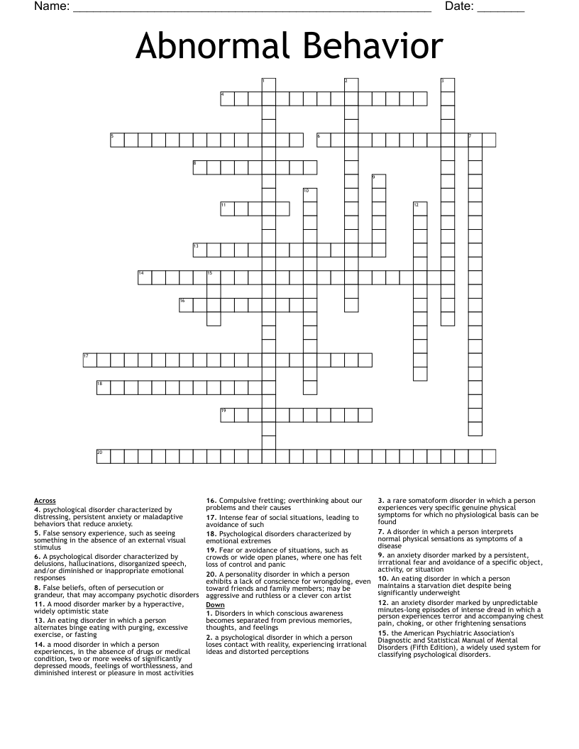 Abnormal Behavior Crossword WordMint