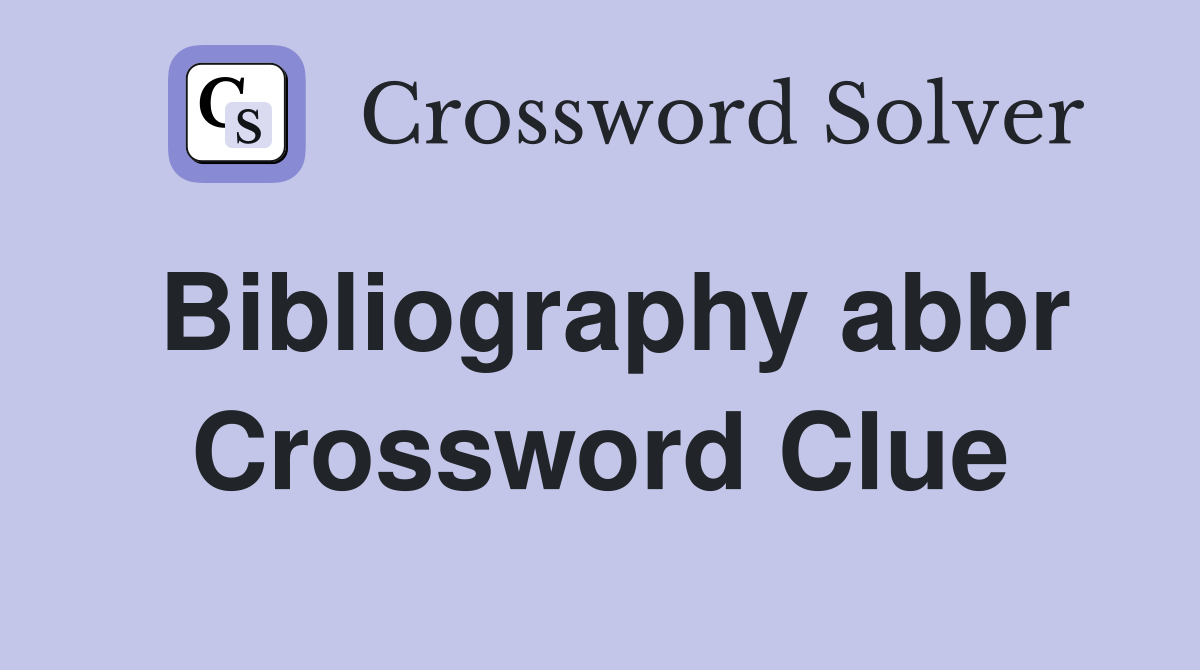 Bibliography abbr. Crossword Clue Answers Crossword Solver