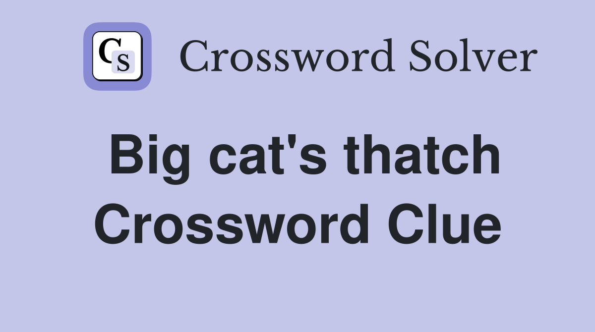 We have found 40 possible answers for this clue in our database. Web answers for big cat's thatch crossword clue. There are related clues (shown below). The crossword solver finds answers to. Crossword clue here is the solution for the big cat's thatch clue featured on january 1, 1978.