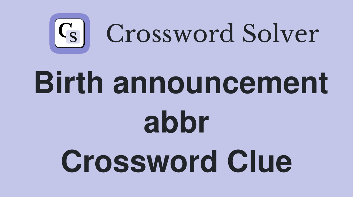 Birth announcement abbr. Crossword Clue Answers Crossword Solver