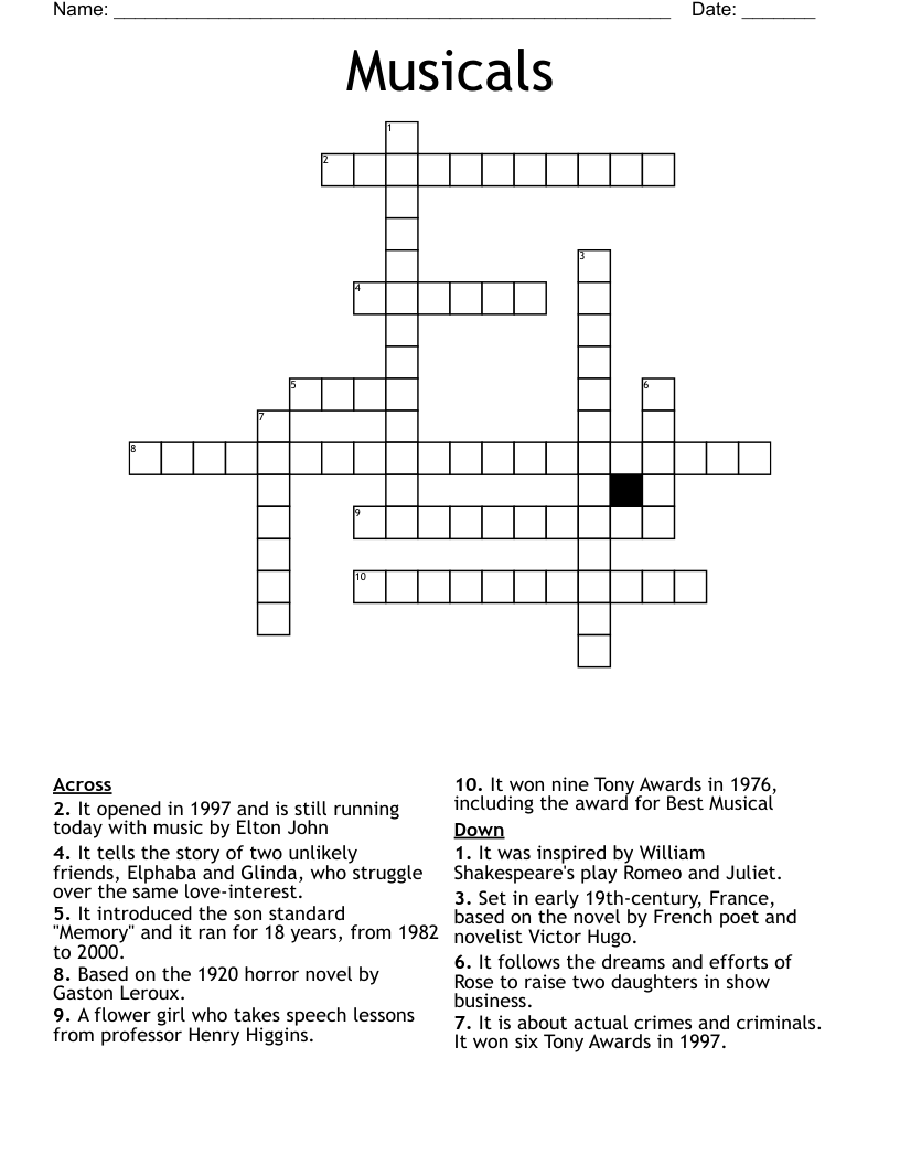 Musical Crossword Puzzles With Free Printables Musicnotes Now