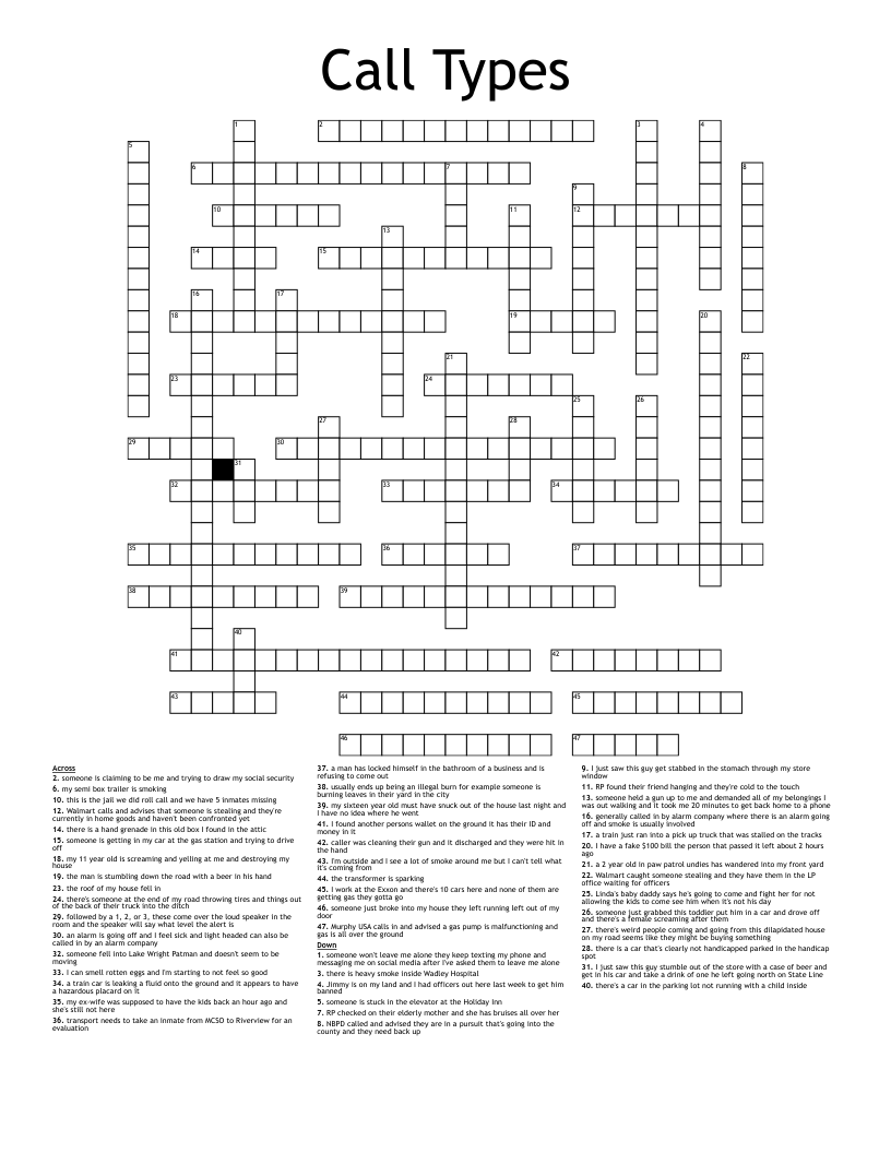 CALL TYPES Crossword WordMint