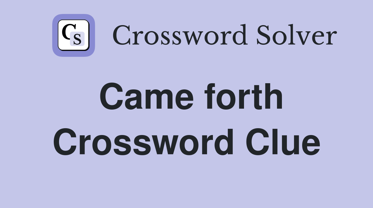 Came forth Crossword Clue Answers Crossword Solver