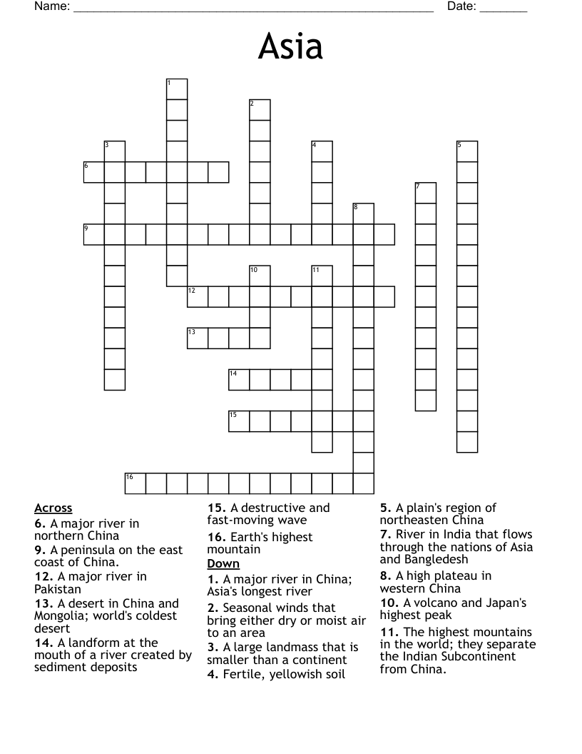 East Asia Crossword WordMint