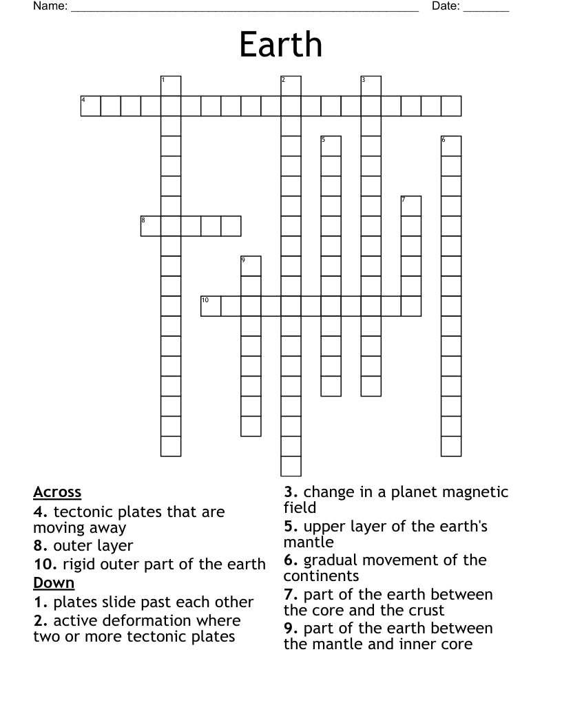 Earth structure Crossword WordMint