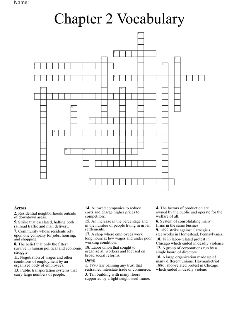 Chapter 2 Vocabulary Crossword WordMint