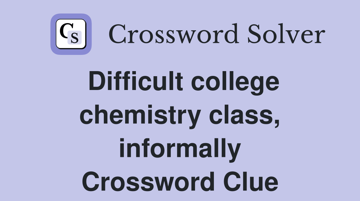 Difficult college chemistry class, informally Crossword Clue Answers Crossword Solver