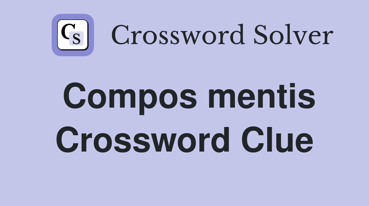 Web here is the answer for the crossword clue compos mentis last seen in telegraph cross atlantic puzzle. If you haven't solved the crossword clue compos mentis yet try to. Web the crossword solver found 30 answers to compos mentis, 5 letters crossword clue. Web we solved the clue 'compos mentis' which last appeared on september 14, 2020 in a.