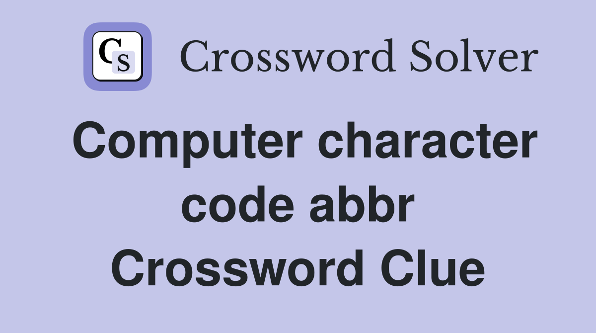 Web here is the answer for the crossword clue computer character code abbr. There are related clues (shown below). Last seen in commuter puzzle. We have found 40 possible answers for this clue in our. There are related clues (shown below).