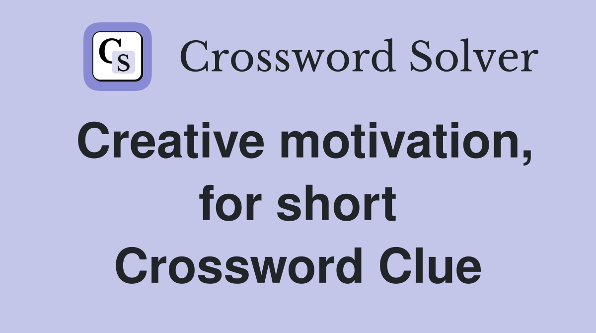 Creative motivation, for short Crossword Clue Answers Crossword Solver