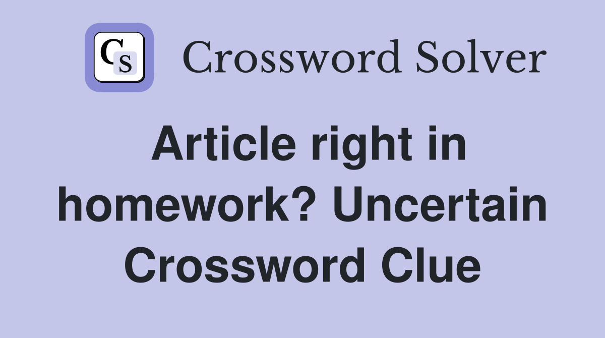Article right in homework? Uncertain Crossword Clue Answers Crossword Solver