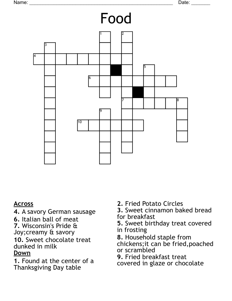 Desserts Crosswords, Word Searches, Bingo Cards WordMint
