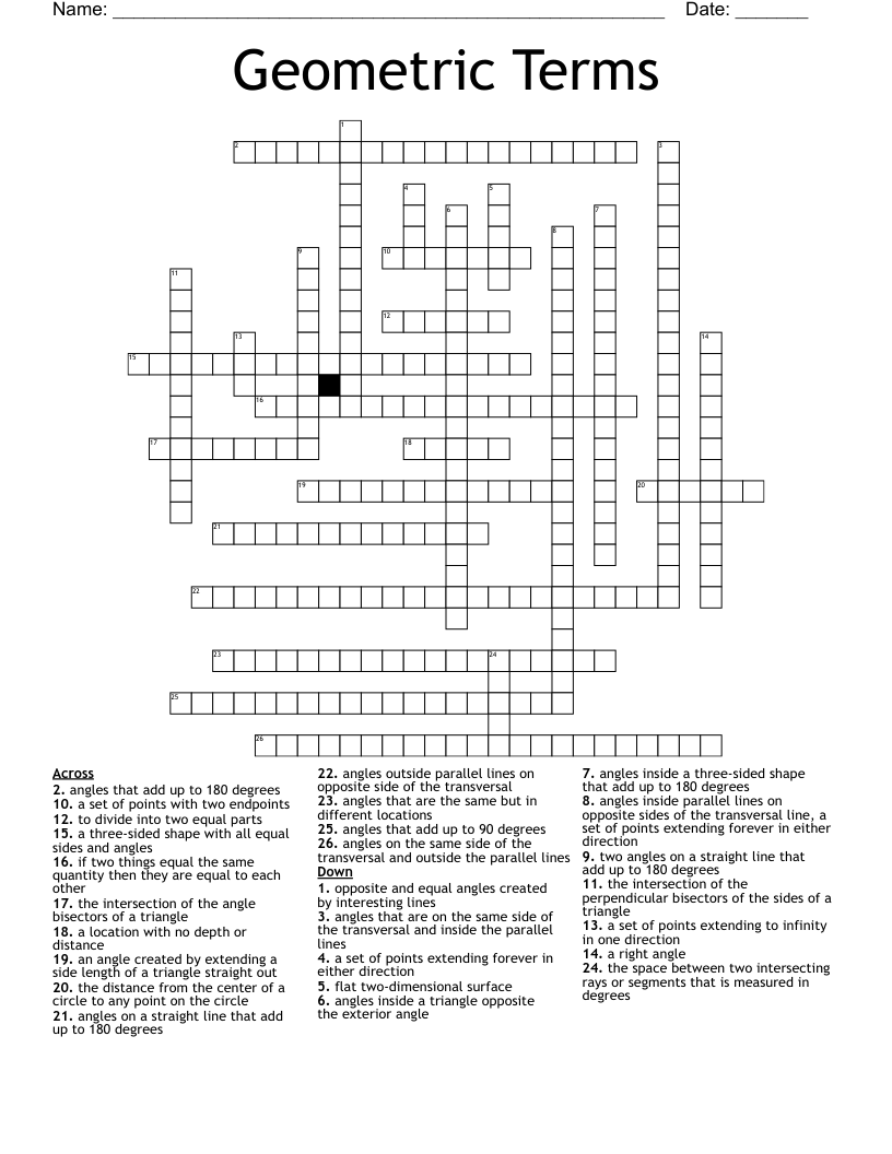 Parallel Lines and Transversal Crossword WordMint