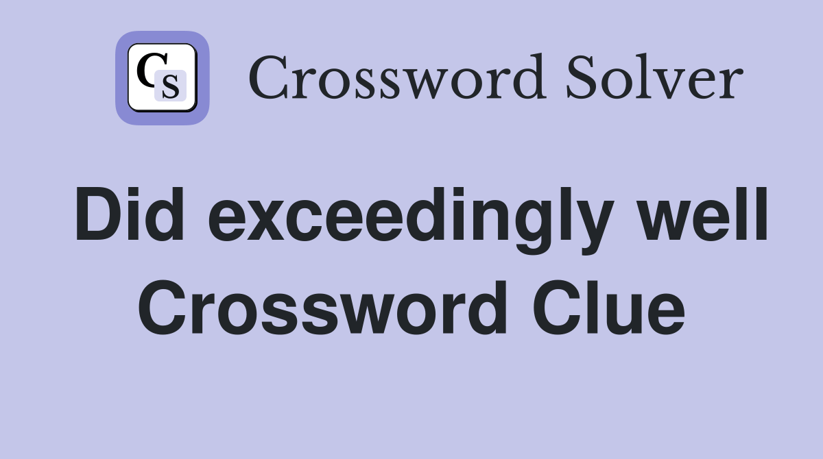 Did exceedingly well Crossword Clue Answers Crossword Solver