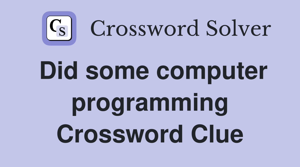 Did some computer programming Crossword Clue Answers Crossword Solver