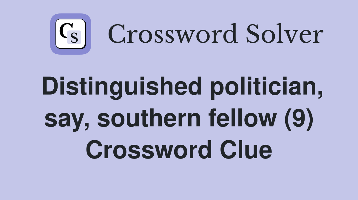 Distinguished politician, say, southern fellow (9) Crossword Clue Answers Crossword Solver