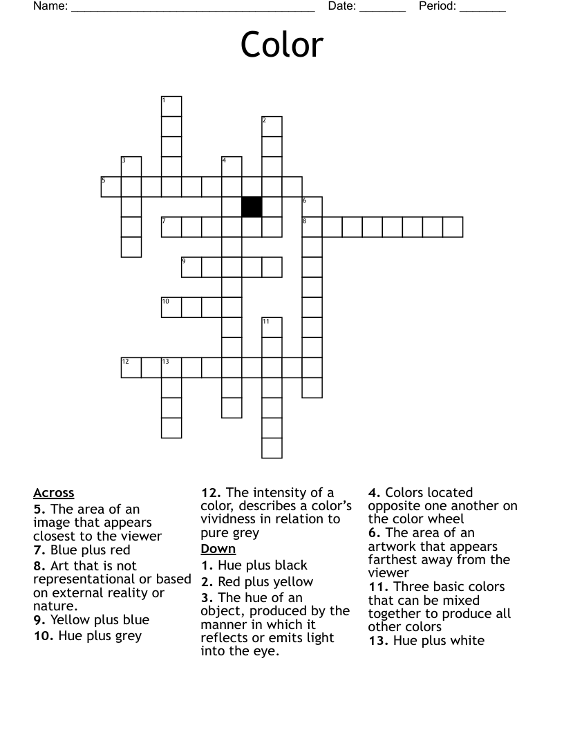 Art Crossword Line, Color, Shape, and Form WordMint