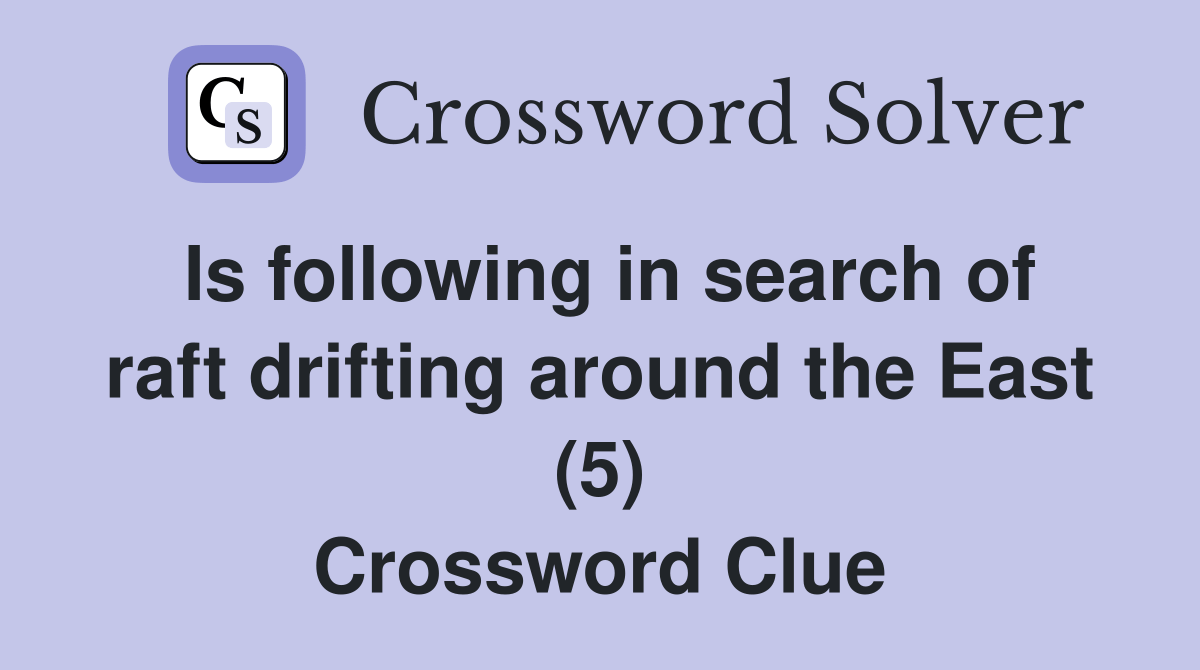 Is following in search of raft drifting around the East (5) Crossword Clue Answers Crossword