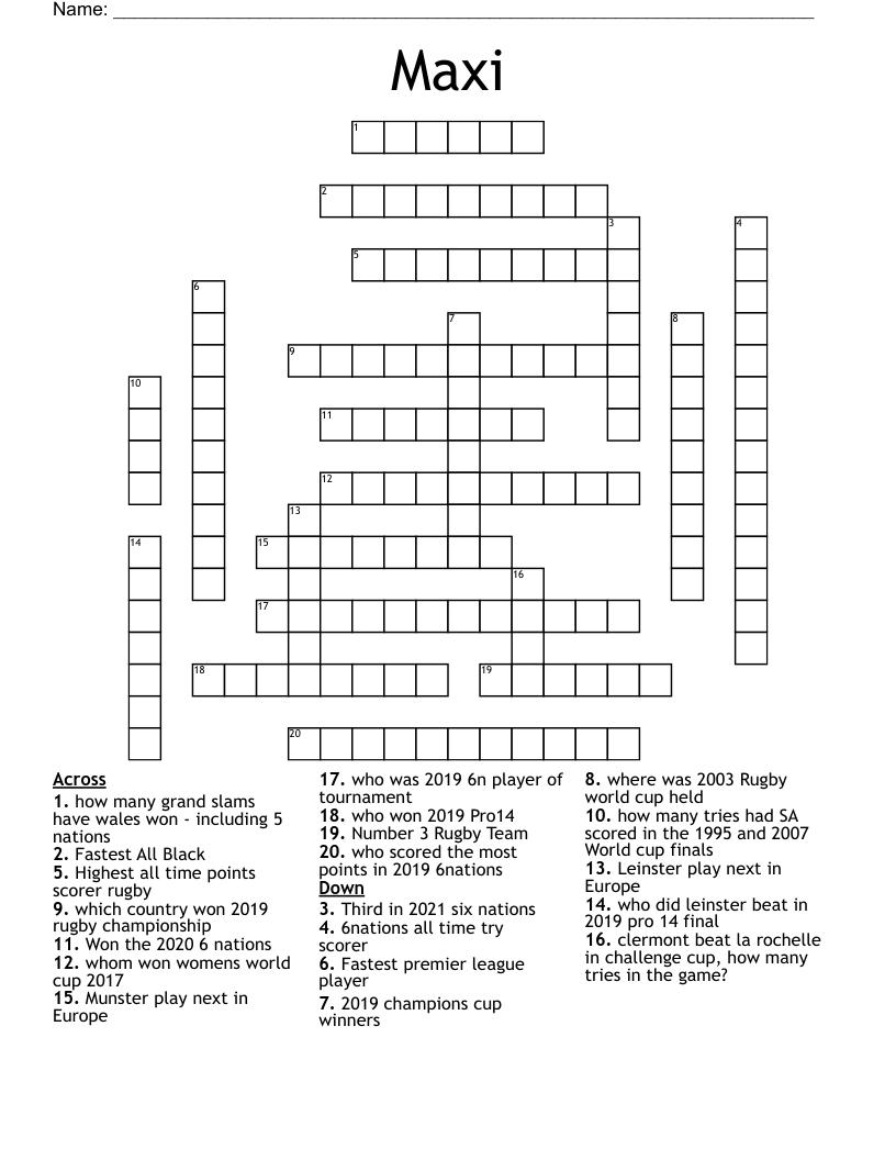 Printable Crosswords Rugby Free Crossword Puzzles Printable