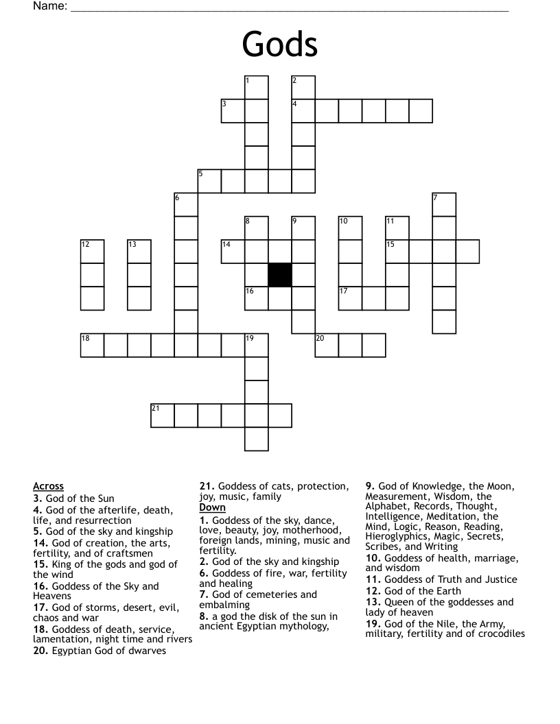 Ancient Egyptian Gods and Goddesses Crossword WordMint