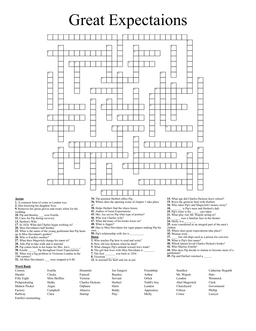 Great Expectaions Crossword WordMint