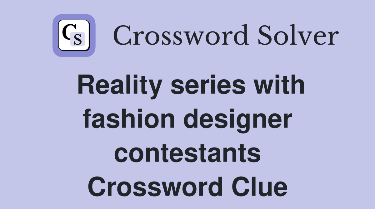 Reality series with fashion designer contestants Crossword Clue Answers Crossword Solver