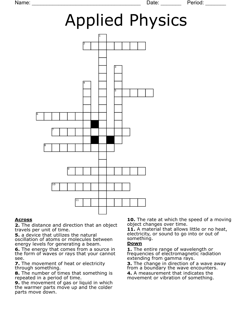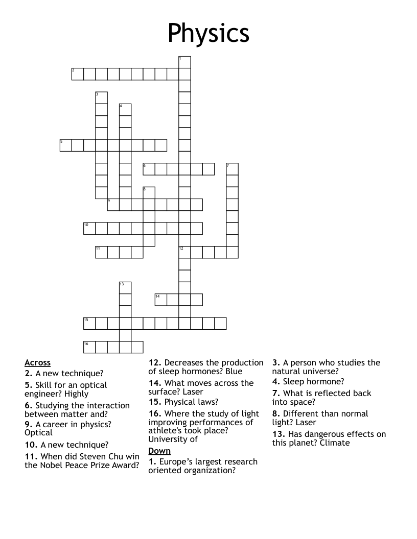 Physics Crossword Puzzles Printable With Answers Printable Crossword Puzzles