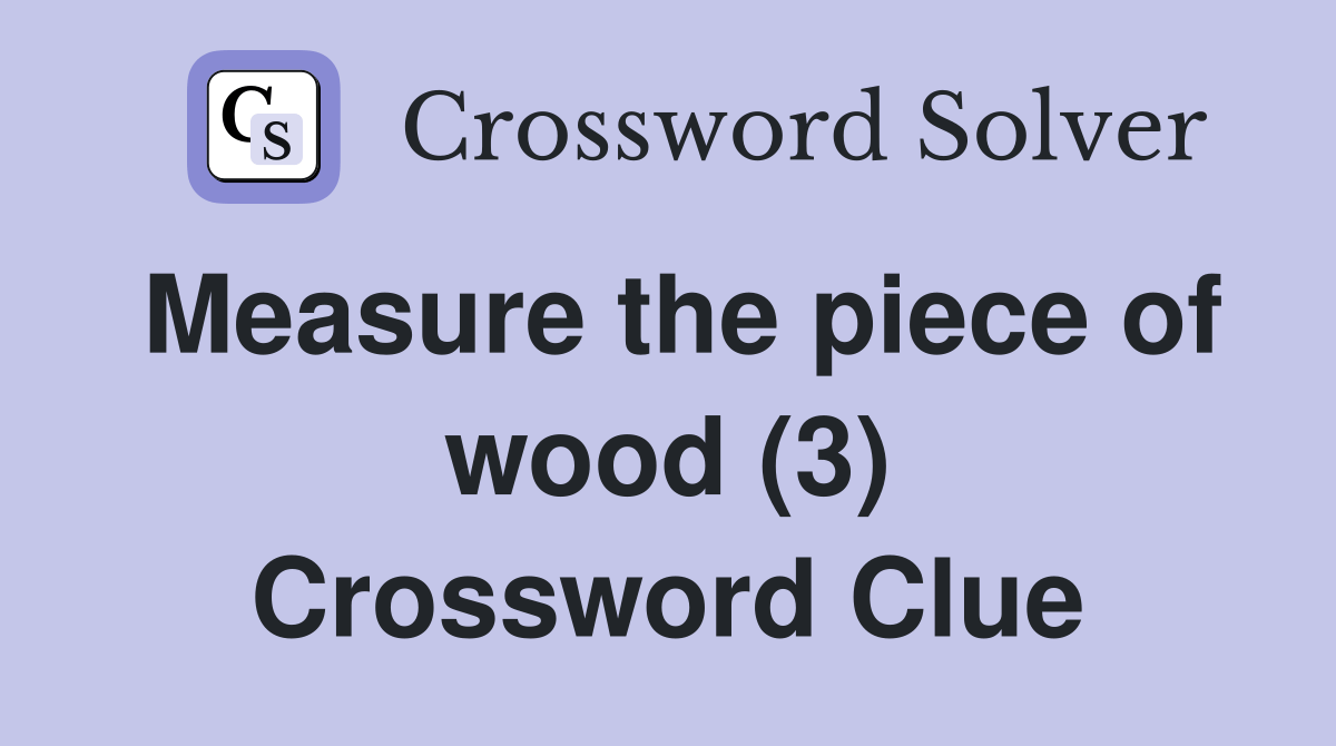 Measure the piece of wood (3) Crossword Clue Answers Crossword Solver