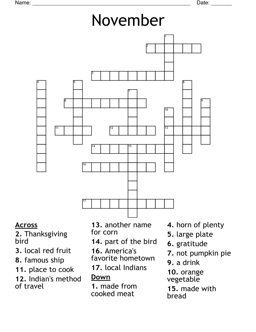 November Crossword Puzzle Printable Printable Crossword Puzzles Online