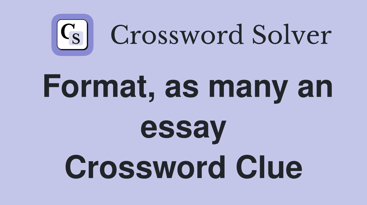 Web Find The Solution To The Crossword Puzzle Clue Format, As Many An Essay.