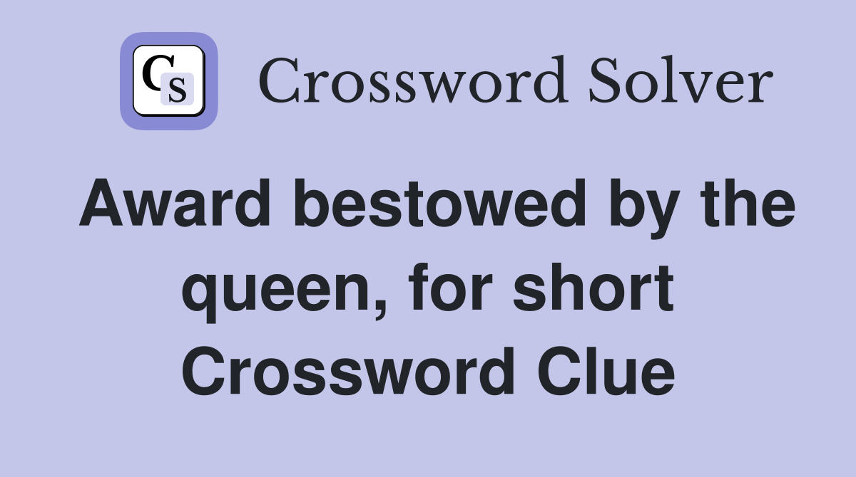 Award bestowed by the queen, for short Crossword Clue Answers Crossword Solver