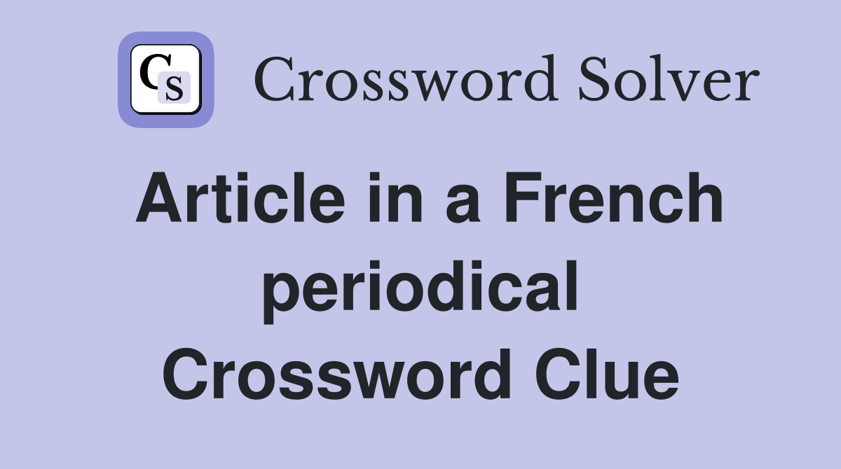 Article in a French periodical Crossword Clue Answers Crossword Solver