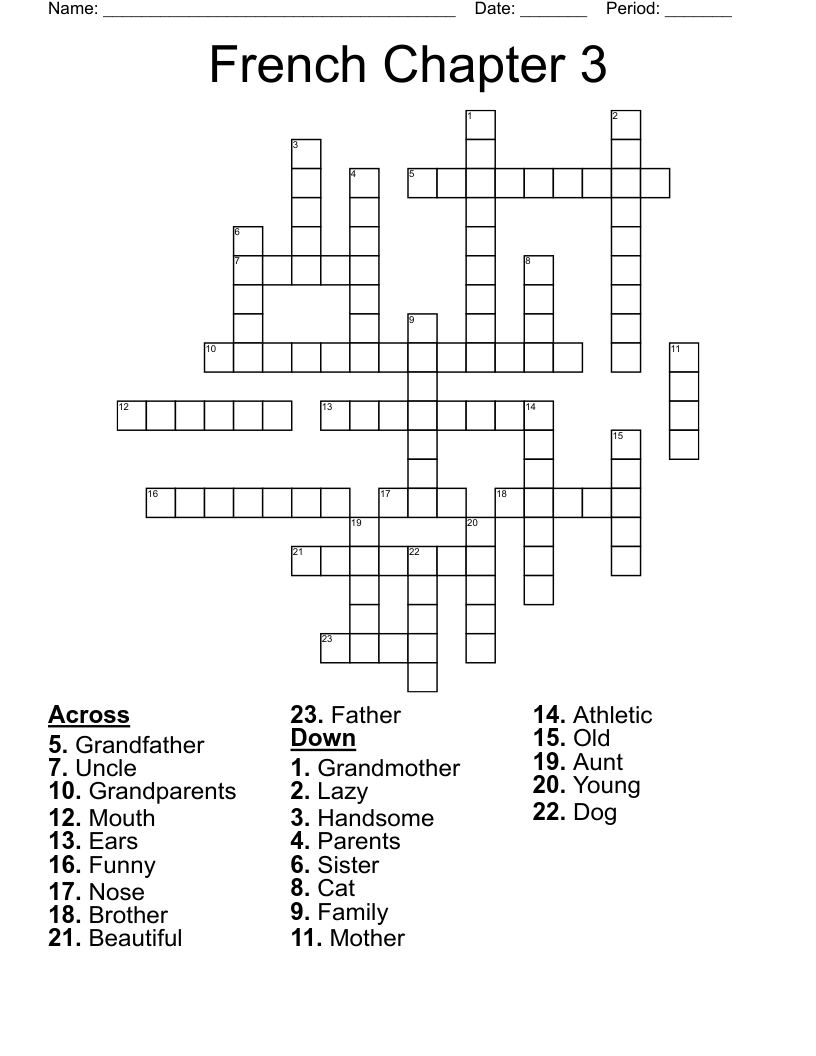 French Chapter 3 Crossword WordMint