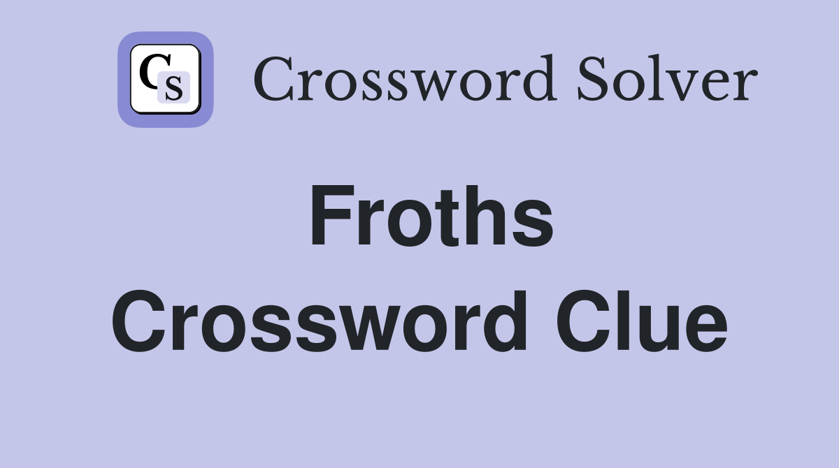 See definitions, anagrams, and examples of. We will try to find the right answer to this particular crossword clue. Today's crossword puzzle clue is a quick one: Web while searching our database we found 1 possible solution for the: Froths is a crossword puzzle clue that we have spotted 7 times.