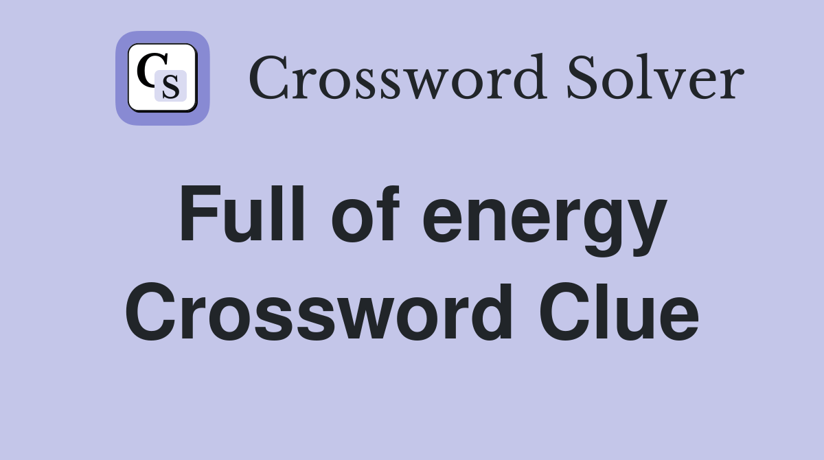 Web here is the answer for the crossword clue full of energy last seen in thomas joseph puzzle. The crossword solver finds answers to classic. Web here are all the possible answers for full of energy crossword clue which contains 5 letters. We have 11 answers for the clue full of energy. Web find the answer to the crossword clue.