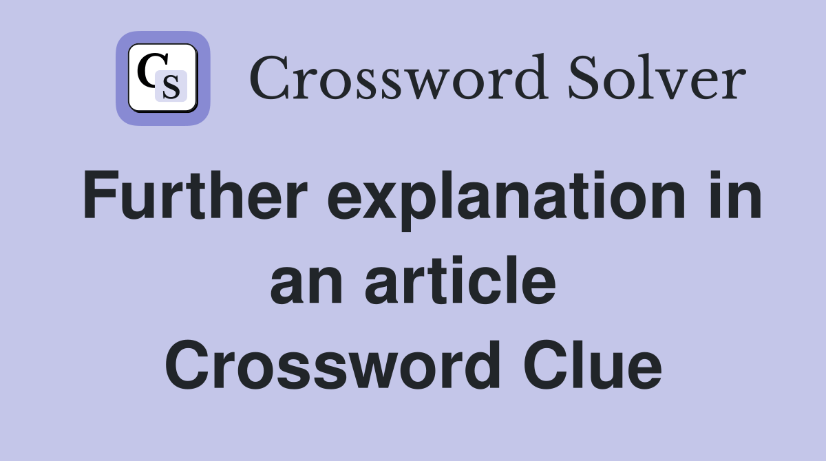 Web the crossword solver found 30 answers to further explanation in an article, 11 letters crossword clue. Web here are the possible solutions for further explanation in an article (. Web we found 40 solutions for further explanation in an article. Web we have got the solution for the further explanation in an article (… the ends of this answer.